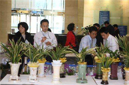 우리은행 본점 로비에 지난 이틀간 화분을 전시한 뒤 영업종료 후 공매를 실시하자 직원들의 반응은 뜨거웠다.