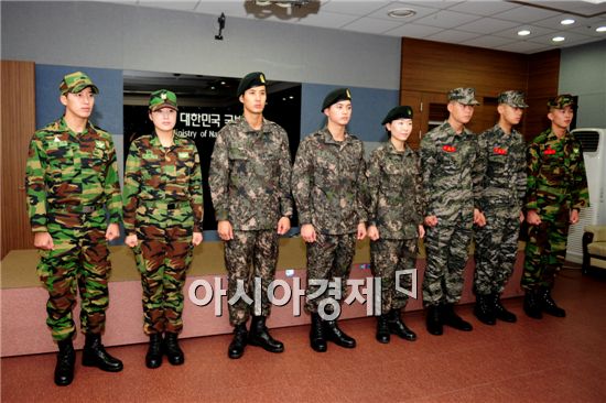 [아시아경제 양낙규 기자]국방부는 내달 1일부터 차세대 신형전투복이 군에 보급된다고 29일 밝혔다. 1990년에 도입된 기존 전투복은 위장효과가 떨어지고 면ㆍ폴리에스터 혼방소재로 제작돼 기능성과 활동성이 부족했다. 신형 전투복은 4계절용 첨단 고기능성 섬유소재로 제작됐다.