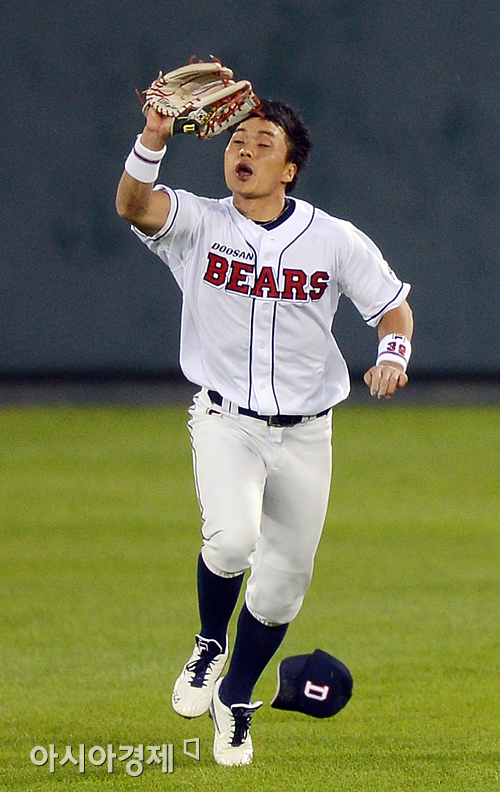 [아시아경제 정재훈 기자] 이종욱이 9일 오후 잠실야구장에서 열린 '2012 팔도 프로야구 준플레이오프 두산 베어스와 롯데 자이언츠의 2차전 경기 1회초 2사 1루 상황에서 홍성흔의 타구를 잡아내고 있다.