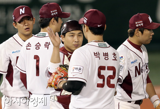 [아시아경제 정재훈 기자] 4일 오후 서울 목동야구장에서 열린 '2013 한국야쿠르트 세븐프로야구' 넥센 히어로즈와 삼성 라이온즈의 경기. 넥센이 3:1 승리를 거두며 시즌 30승에 선착했다.