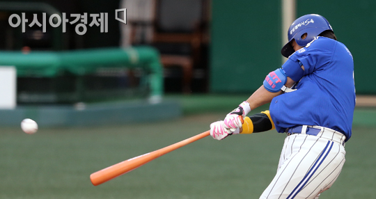 [아시아경제 정재훈 기자] 5일 오후 서울 목동야구장에서 열린 '2013 한국야쿠르트 세븐프로야구' 넥센 히어로즈와 삼성 라이온즈의 경기. 2회초 1사 1루 상황 박석민이 좌익수 뒤 투런홈런을 치고 있다.