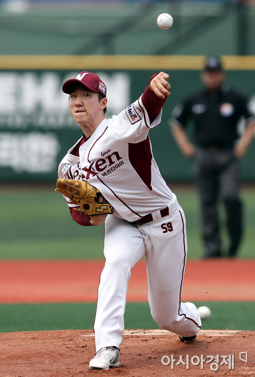 [아시아경제 정재훈 기자] 6일 오후 서울 목동야구장에서 열린 '2013 한국야쿠르트 세븐프로야구' 넥센 히어로즈와 삼성 라이온즈의 경기. 넥센 선발투수 강윤구가 역투하고 있다.