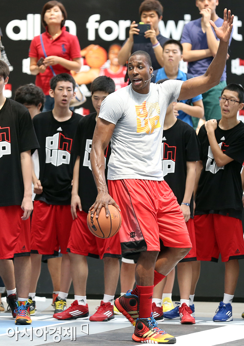 [아시아경제 정재훈 기자] 방한한 NBA 스타 드와이트 하워드가 18일 오전 서울 영등포구 타임스퀘어에서 아디다스 농구클리닉을 진행하고 있다.
