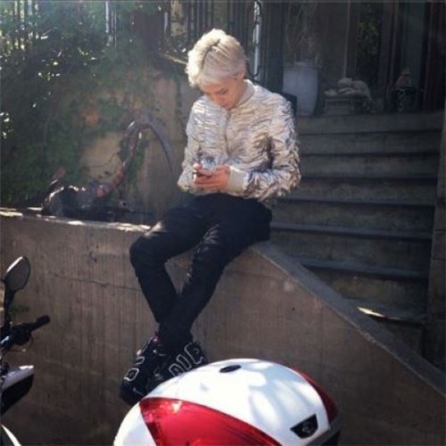 사진 속에는 계단 난간에 걸터앉아 스마트 폰을 내려다보고 있는 지드래곤의 일상 모습이 담겨있다. 지드래곤은 일상 사진임에도 패셔니스타 다운 센스를 발휘해 눈길을 끌었다.