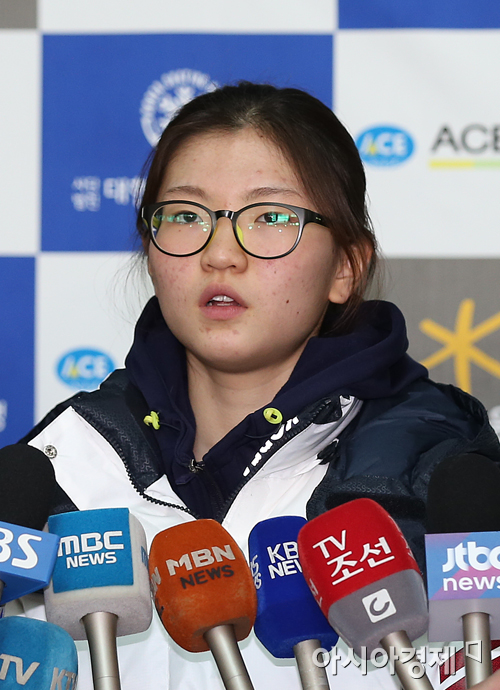 [인천=아시아경제 정재훈 기자] 프랑스 퐁 로뮤로 전지훈련을 떠나는 쇼트트랙 심석희가 22일 오전 인천국제공항에서 출국에 앞서 인터뷰를 갖고 있다.