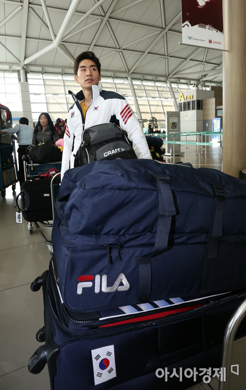 [인천=아시아경제 정재훈 기자] 프랑스 퐁 로뮤로 전지훈련을 떠나는 스피드 스케이팅 이승훈이 22일 오전 인천국제공항에서 출국에 앞서 취재진과 인터뷰를 갖고 있다.