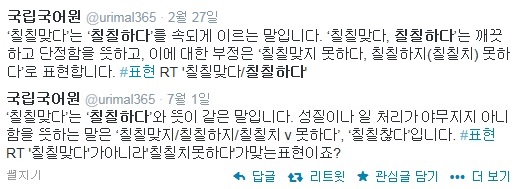 ▲'칠칠하다' 뜻. (출처: 국립국어원 트위터)