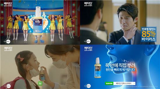 이번 TV광고 시리즈는 베타딘 인후스프레이의 사용이 필요한 상황을 가사로 풀어냈다. 경쾌한 CM송과 제품을 의인화한 캐릭터를 활용, 간편하게 뿌려 사용할 수 있는 제품의 특성을 재미있게 풀어냈다.