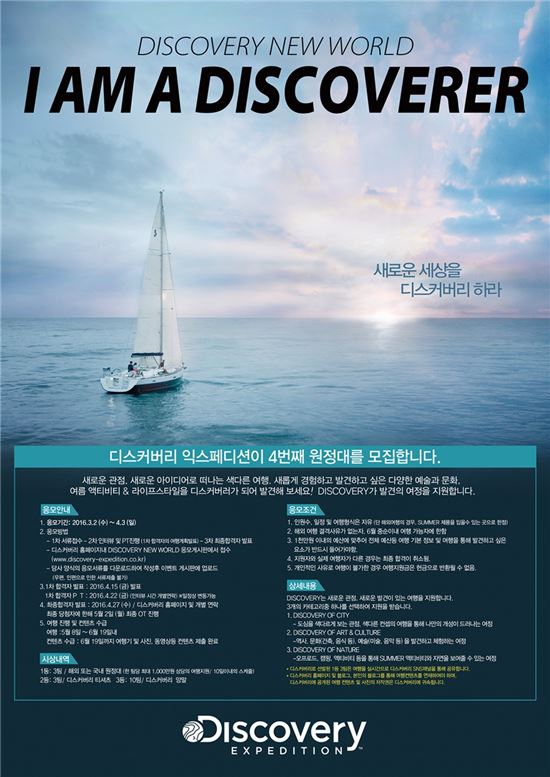 디스커버리 익스페디션은 1차 서류 심사와 2차 인터뷰 및 PT 면접, 3차 최종면접을 거쳐 4월 27일 총 3팀의 원정대를 선발할 예정이다. 선발된 팀에게는 팀 별로 1000만원 이내의 여행경비를 지원받게 되며, 6월 내에 여행을 떠나게 된다.
