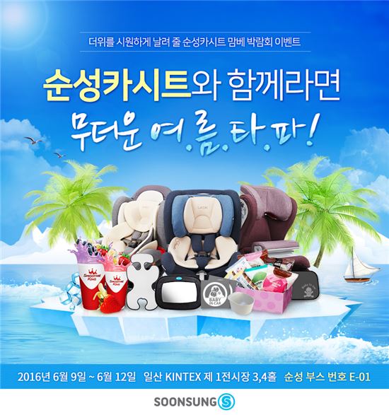 [아시아경제 임혜선 기자]카시트 전문기업 순성산업이 9일부터 일산 킨텍스 제 1전시장에서 개최되는 '제22회 맘앤베이비엑스포'에 참가한다.