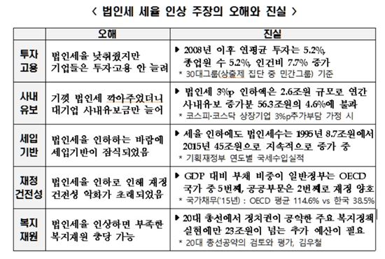 전경련 '법인세율 인상 주장의 오해와 진실'