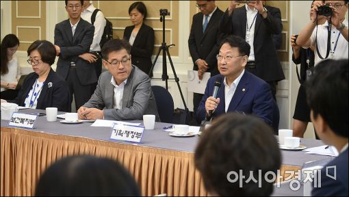 [아시아경제 윤동주 기자] 유일호 경제부총리 겸 기획재정부 장관이 13일 서울 여의도 국회에서 열린 '양극화와 저출산 해소를 위한 정책협의'에 참석, 모두 발언을 하고 있다.