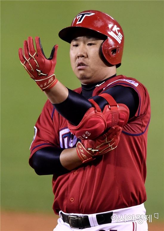 [아시아경제 김현민 기자]프로야구 KIA 타이거즈와 두산 베어스의 2016 KBO리그 경기가 9일 잠실구장에서 열렸다. 4회초 2사 1루에서 KIA 이범호가 좌전 안타를 치고 출루하고 있다.