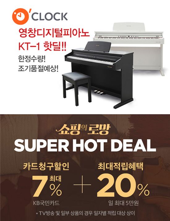 [아시아경제 임온유 기자] 영창뮤직이 CJ오쇼핑에서 3일간 디지털피아노 특가 행사 ‘쇼핑의 로망 슈퍼 핫딜’ 을 실시한다고 7일 밝혔다.