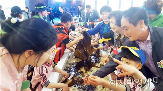 미역, 다시마, 톳, 불가사리, 개불, 소라, 전복 등 10여종의 다양한 해양생물들을 손으로 직접 만져볼 수 있어 즐거워하는 어린이들의 웃음소리가 끊이지 않고 있다. 부모님들도 신기해하는 자녀들의 모습들을 사진에 담느라 연신 흐뭇한 미소를 짓고 있다.