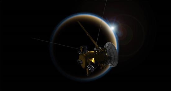 오는 15일 토성에 충돌해 최후를 맞는 카시니 호가 타이탄과 마지막 키스를 나눴다.