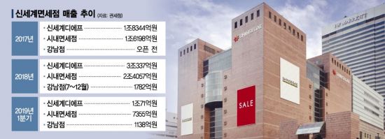 신세계면세점은 2016년 명동점 오픈 이후 같은 해 신규 추가된 서울 시내면세점 특허를 획득하며 '강남 시대' 출발에 박차를 가했다. 하지만 2017년 중국의 고고도미사일방어체계(THAADㆍ사드) 보복으로 강남점 오픈이 1년가량 연기됐고 지난해 7월18일 문을 열었다.