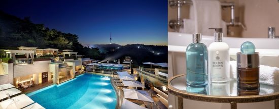 9일 호텔업계에 따르면 서울신라호텔은 야외 수영장 '어번 아일랜드'에서 '몰튼 브라운'과 협업해 '리프레싱 모먼트 위드 몰튼 브라운' 패키지를 선보인다. 몰튼 브라운은 51년 역사를 가진 프리미엄 브랜드다. 모든 제품이 100% 식물성으로 동물 실험을 진행하지 않는다. 북미 대표 8개 동물보호단체가 연합해 만든 리핑버니의 크루얼티 프리(동물실험 완전 배제) 인증마크도 취득했다. 패키지 구성은 디럭스 룸(1박), 어번 아일랜드 문라이트(체크인 당일 오후 6시~10시 사용) 입장 혜택(2인), 코스탈 사이프러스&씨 펜넬 샤워젤 300㎖·바디로션 300㎖, 체련장 및 실내 수영장(2인)으로 구성된다. 상품은 이달 31일까지 이용할 수 있다.