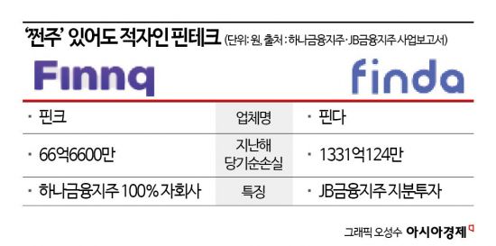 금융지주사가 전략적으로 투자한 핀테크 업체도 사정은 마찬가지다. 지난해 7월 핀다는 JB금융지주로부터 470억원 규모의 투자를 받았다. 당시 핀다의 누적 투자금은 644억원으로, JB금융지주의 투자 규모는 전체 투자금의 약 73%를 차지했다. 핀다는 지난해 당기순손실 1331억2400만원을 기록했다. 지난해 신규대출 건수가 감소하는 등 매출이 줄었으나 인건비 등 지출도 함께 감소해 손실을 최소화했다고 핀다 측은 설명했다.