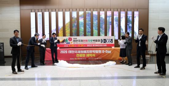 태안국제원예치유박람회조직위원회는 '2026 태안국제원예치유박람회'의 성공 개최를 위한 결의를 다지고 개최일을 알리는 '디데이(D-day) 전광판'을 도청에 설치하고 25일 오전 제막식을 개최했다고 밝혔다.
