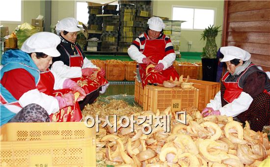 전남 보성군 쾌상리 두방마을 농부생각영농조합법인(대표 이천민) 작업장에는 이른 아침부터 호박죽 생산에 분주하다.