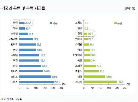 현재 경제협력개발기구(OECD) 회원국 가운데 한국은 일본과 함께 식량 자급률이 가장 떨어지는 나라 가운데 한 곳이 됐다.