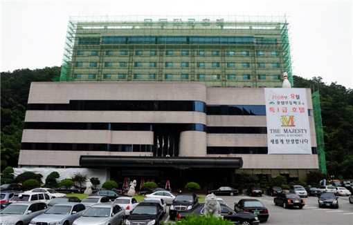 광주무등파크호텔이 오는 8월 '더 머제스티 호텔 앤 리조트로로 이름을 버꾸고 특1급 호텔로 새롭게 태어나기위해 리모델링 공사가 한창 진행중이다.최기남기자