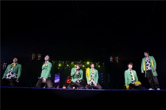 [아시아경제신문 박건욱 기자]슈퍼주니어는 13명이 모두 모이고 나서야 그 찬란한 빛을 발했다. 5개월여만에 모든 멤버들이 함께 한무대에 선 슈퍼주니어는 4일 오후 4시 서울 방이동 올림픽공원내 펜싱경기장에서 '슈퍼주니어 The 1st ASIA TOUR-SUPER SHOW ENCORE'라는 타이틀로 공연을 열고 6500여명의 3시간여 동안 33곡을 선보이며 관객들과 뜨겁게 호흡했다. 이번 콘서트는 지난 2월 22일부터 24일까지 3일간 서울 올림픽공원 펜싱경기장에서 펼쳐진 '슈퍼주니어 The 1st ASIA TOUR-SUPER SHOW'의 앙코르 공연으로 히트곡은 물론 다채로운 개인기와 퍼포먼스, 신출귀몰한 무대연출 등 슈퍼주니어만의 유쾌한 매력을 느낄 수 있는 최고의 무대로 꾸며졌다. 특히, 이번 콘서트는 올해 초 2집 앨범 '돈 돈! (Don't Don)' 활동을 마친 후 슈퍼주니어-해피, 슈퍼주니어-M, 슈퍼주니어-T 등 유닛활동과 드라마, 영화, DJ 등 개별활동에 주력하며 아시아에서 활약하고 있는 슈퍼주니어를 오랜만에 한 자리에서 만날 수 있었던 만큼 팬들의 기대를 한몸에 받았다. 슈퍼주니어 멤버들은 공연장을 가득 메운 관객들을 보고 "슈퍼주니어의 인기가 이정도였는지 몰랐다"며 "오랜만에 열세명이 뭉친 만큼 열심히 하겠다"고 팬들에게 첫 인사를 건네자 팬들은 큰 환호로 이들을 맞았다.사진=sm엔터테인먼트