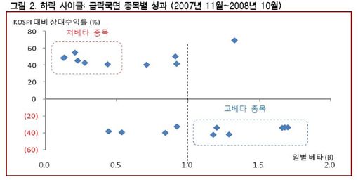 아울러 그는 "삼성중공업과 대우조선해양, SK케미칼과 같은 고베타 종목이 하락 사이클의 반등 국면에서 강한 시세탄력을 유지하는 경향이 있다"고 주장했다.