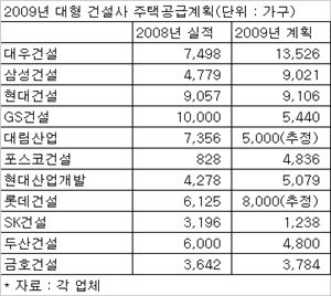 금융위기와 건설사 구조조정에 대한 영향으로 건설업계에 한파가 몰아치고 있는 가운데 올해 대형건설사 대부분이 보수적인 분양 전략을 세웠다.