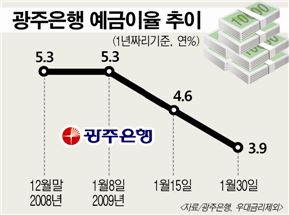 이와관련, 광주은행 관계자는 "시장금리가 크게 하락하면서 시중은행과 수신금리리 차이가 더 커져 이율을 상당 폭 조정할 수 밖에 없었다"면서 "그나마 은행의 경우 지역민을 위해 시중은행보다는 다소 높은 금리를 제공하고 있다"고 설명했다.