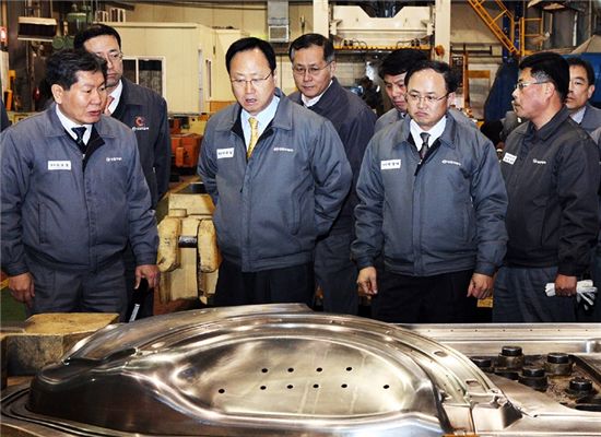 공장라인 점검, 채권단ㆍ부품업체 미팅 등 빡빡한 스케줄 소화 쌍용자동차 이유일, 박영태 공동관리인이 빡빡한 일정을 소화하며 회사 경영 정상화 임무 완수에 대한 강한 의지를 보이고 있다. 13일 쌍용차에 따르면 이들 공동관리인은 지난 9일 취임식을 가진 이후 10일 지식경제위원장의 방문을 받은 자리에서 강력한 회생 의지를 전달하는 한편 11일에는 산업은행 관계자 미팅, 협동회 대표 간담회 등을 통해 조기 회생을 위한 지원과 협력을 요청하는 등 다양한 일정을 빠르게 소화하고 있다. 취임식 당일에도 완성차 생산라인을 돌아본 이들은 지난 12일에도 평택을 방문, 경기도지사와 평택시장을 만난데 이어 평택 공장을 방문해 직원들을 격려하는 쉴틈없는 하루하루를 보냈다. 특히, 이날 공장 방문에서 공동관리인은 회사 종합 브리핑을 받고 직원들 기살리기에 총력을 기울여 줄 것을 주문했다. 평택 공장 점검을 마친 후 이유일 관리인은 "쌍용자동차의 회생에 대한 직원 모두의 의지를 확인할 수 있었다"며 "많은 관계자들이 쌍용자동차의 경영 정상화를 위해 지원을 아끼고 있지 않은 상황이 직원들의 강력한 의지와 시너지를 이루어 조속한 정상화가 이루어 질 것으로 기대한다"고 말했다. 공동관리인들은 최근 협동회에서 부품업체들이 신차 C200 개발 등을 위해 요청한 긴금자금 1000억원을 확보하기 위해 채권단과 만날 예정이다. 조태진 기자 tjjo@asiae.co.kr <ⓒ아시아 대표 석간 '아시아경제' (www.asiae.co.kr) 무단전재 배포금지>