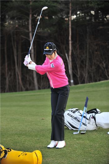 ▲ 이미지 트레이닝= 앞선 두 가지의 연습을 반복하면서 이번에는 자신의 샷에 대한 일정한 이미지를 만들어보자. 사실 웬만한 고수가 아니라면 샷을 하기 전후에 자신의 스윙플레인에 대한 이미지를 기억하기가 쉽지 않다. 연습장에서는 그래서 거울 앞에서 천천히 샷을 해보거나 클럽없이 빈손으로 스윙을 하면서 리듬과 템포를 느껴보는 것이 바람직하다. <사진3>은 김현정씨가 오른쪽 팔 만으로 스윙을 하는 장면이다. 이 연습은 눈을 감고 하는 것도 효과적이다. 이 때의 관심은 스윙동작이 아니다. 샷을 하는 동안 자신의 체중이동과 이에따른 균형감을 느껴보라는 것이다. 이 연습은 굳이 연습장이 아니더라도 충분히 할 수 있다. 이미지 구축 역시 노력하는 골퍼가 먼저 얻을 수 있다.▲ 지도= 최명호 프로 golfacademy@empal.com▲ 속초= 김현준 골프전문기자 golfkim@asiaey.co.kr▲ 사진= 윤동주 기자 doso7@asiae.co.kr▲ 클럽협찬= 코브라골프▲ 의상협찬= 휠라코리아▲ 장소협찬= 파인리즈골프장