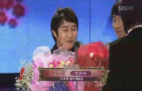 시상자 박명수과 신봉선에게 상을 건네받은 김병만은 "우선 마이크를 키높이에 맞춰주신분 너무 감사한다"고 너스레를 떤 후 "수근아, 내가 받아서 정말 미안하다"라고 소감을 밝혔다.