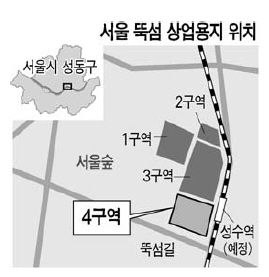 한편 뚝섬4구역은 지난 2005년 6월 P&D홀딩스에 4440억원에 팔렸다. 하지만 이 회사가 계약금(444억원)을 제외한 잔금을 3년이 넘도록 내지 않자 서울시는 계약자 취소 통보를 했다.