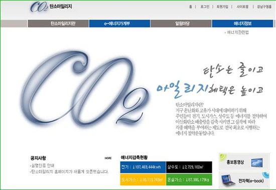 탄소마일리지 시스템은 가입만 하면 가정이나 기관에서 사용한 에너지(전기, 도시가스, 상수도)를 전년도 같은 달 사용량과 자동 비교해 사용한 에너지 증·감 상태를 온실가스(이산화탄소)로 자동 환산해 주는 시스템이다. 이 시스템은 온라인상에서 일반가정·기업·학교·공공기관 등이 간단하게 가입할 수 있다.