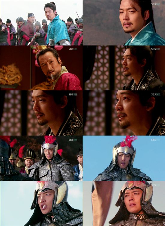 이날 방송에서 사랑하는 여인 자명(정려원 분)의 나라이자 적국인 낙랑국을 평화적인 방법으로 차지하길 바라는 호동은 무력으로 낙랑국을 차지하려는 고구려 왕 대무신왕(문성근 분)에게 자신의 뜻을 지켜주길 바라며 무릎을 꿇고 눈물을 흘렸다.