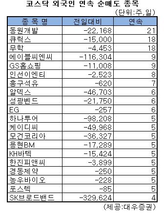 [표] 외국인 GS홈쇼핑 9거래일째 순매도