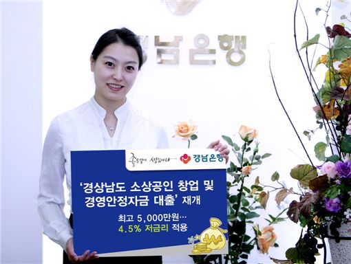 경남은행은 31일 도내 소상공인의 창업과 경영안정을 위해 '경상남도 소상공인 창업 및 경영안정자금 대출'을 재개한다고 밝혔다.