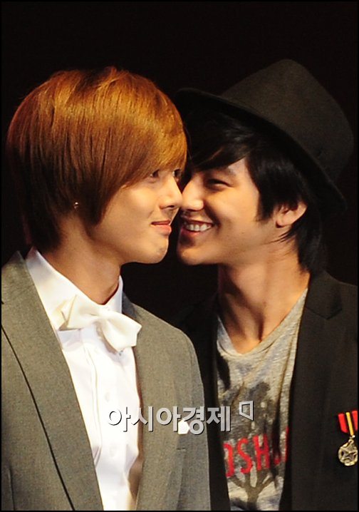 [아시아경제신문 박성기 기자]가수 김현중과 김범이 31일 오후 9시 서울 방이동 올림픽공원에서 진행된 'Good Bye 윤지후'에서 귓속말을 나누고 있다. 박성기 기자 musictok@asiae.co.kr <ⓒ아시아경제 & 스투닷컴(stoo.com)이 만드는 온오프라인 연예뉴스>