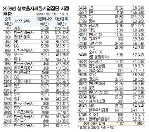 공정위 2009년 상호출자제한 48개 기업집단 선정