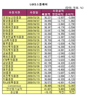 10일 증권업계 및 증권정보업체 에프앤가이드에 따르면 굿모닝신한증권, 동양종금증권 등 21개 증권사는 LG디스플레이의 올 1분기 대규모 영업적자와 순손실을 기록할 것으로 예상했다.