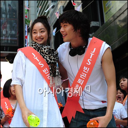 [아시아경제신문 박성기 기자]5일 오후 2시 서울 명동에서 진행된 국제 구호단체 'JTS'와 연극인 사회봉사모임 '길벗'이 주관한 가난한 지구촌 어린이들을 위한 거리 캠페인에서 배우 서효림과 최다니엘이 인사를 나누고 있다.