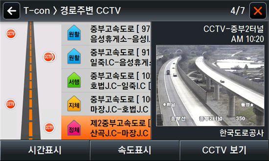내비게이션에 휴대인터넷 '와이브로'를 적용하면 이처럼 CCTV 화면을 직접 보며 실시간 교통상황을 확인할 수 있게 된다. 사진은 팅크웨어가 KT와 함께 개발할 와이브로 내비게이션 플랫폼의 모습.