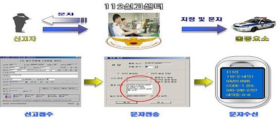 충북지방경찰청(청장 박기륜)은 10일 범죄신고에 빠르고 정확히 대응키 위해 신고접수와 동시에 현장출동순찰요원의 휴대폰조회기로 사건내용, 신고자 전화번호 등을 문자로 실시간 알려주는 ‘112신고 문자전송시스템’을 갖췄다.