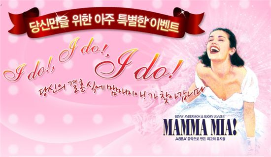 [아시아경제신문 박소연 기자]뮤지컬 '맘마미아'가 다음달 21일 국립극장 공연을 앞두고 결혼식 축가 이벤트를 연다.20일 신시뮤지컬컴퍼니는 '맘마미아'의 배우들이 직접 결혼식에 참석, 축가를 불러주며 두 사람에게 평생 잊지 못할 추억을 만들어 줄 '결혼식 축가 이벤트'를 실시한다고 밝혔다. 공연 속 멋진 청혼가 'I DO I DO I DO I DO I DO'가 다음달 8일부터 14일까지 결혼하는 커플들에게 선물로 주어진다.'맘마미아' 홈페이지(www.mamma-mia.co.kr) 이벤트 페이지에 결혼에 골인하기까지의 특별한 이야기를 올리면 된다.박소연 기자 muse@asiae.co.kr<ⓒ아시아경제 & 스투닷컴(stoo.com)이 만드는 온오프라인 연예뉴스>
