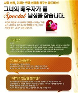 200억원대 자산을 가진 골드미스가 공개적으로 구혼에 나섰다. 결혼정보업체 선우는 자사 홈페이지에 '200억 자산 골드미스 공개구혼'이라는 공지사항을 기재했다. 다음달 30일까지 접수가 진행중인 이 공개 구혼을 신청한 사람은 자신을 사업가로 소개했다. 선우는 홈페이지에 이 회원이 직접 보내주신 글을 올리고 회원들로부터 프러포즈를 신청받고 있는 상황이다. 이 자산가는 글에서 "올해 49세로 대학 대신 사회로 나가 일을 시작했고, 개인 사업에 매진하다 혼기를 훌쩍 넘겼다"며 "자유롭게 높이 비상하는 새처럼 나래를 떨치고 싶습니다"고 나와있다. 원하는 직업에는 회사원과 전문직 미혼으로 4년재 대학 졸업을 제시했다. 선우측은 이와 함께 경력 10년차 커플매니저를 통해 직접 결혼을 성사시킬 것이라고 덧붙였다. 선우에 명시했다. 지난해에는 선우를 통해 1000억대의 자산가가 데릴사위를 구한다는 공개 모집이 진행되기도 했다. 결혼정보업체 관계자는 "자신의 재산에 대해 알리는 것을 꺼리는 일반적인 경우와는 다르게 이례적으로 자신의 재산을 직접 공개한 사례"라며 "재산에 눈이 먼 사람들을 조심해야할 것"이라고 말했다. 오현길 기자 ohk0414@asiae.co.kr <ⓒ세계를 보는 창 경제를 보는 눈, 아시아경제(www.asiae.co.kr) 무단전재 배포금지>