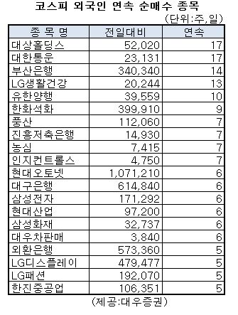 [표] 외국인 대상홀딩스 17거래일째 순매수