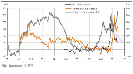 채권시장에 대한 향후 전망이 엇갈리고 있다.우선 단기금리 상승세가 이어지면서 일드커브가 플래트닝을 연출할 것이라는 주장이 제기됐다. 반면 단기금리가 갑자기 상승한 만큼 되돌림 현상이 나타나며 다시 스티프닝이 될 것이라는 목소리도 나왔다.채권시장은 지난 금통위 후 단기금리를 중심으로 크게 출렁였다. 지난주와 전일까지 단기금리가 70bp가량이나 오른 것. 특히 일드커브가 그간 스티프닝에서 플래트닝으로 변화하는 양상마저 연출한 바 있다.양진모 SK증권 연구위원은 “보통 긴축 가능성이 제기될 경우 단기금리가 상승하면서 플래트닝을 연출한다”며 “또한 그간 장단기 스프레드차가 커 되돌림 현상이 진행될 가능성이 높다”고 말했다.그는 “미국의 경우 장단기 스프레드가 많이 벌어져 있다. 또 그런 사이클이 반복된 바 있다”며 “1970년대 초반 이후 지금까지 5번 가량 크게 벌어졌었고 지금은 2003년 최대치 수준정도를 기록한 후 다시 좁혀지는 양상”이라고 덧붙였다.반면 최석원 삼성증권 채권분석파트장은 “지금은 단기금리가 올라가면서 베어플래터 구도로 가고 있다”라면서도 “이미 단기금리가 70bp가량 올랐고 100bp까지 상승할 가능성이 있지만 이를 추세로 단정하긴 이르다”라고 밝혔다.그는 또 “지난 2003년 4월 미국이 상당기간 금리를 동결했을 때와 같은 양상으로 당시에도 단기금리가 일시적으로 올라갔지만 그 후 되돌림 현상이 있었다”고 전했다.