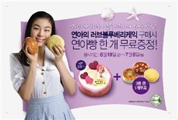 뚜레쥬르에서 올 4월에 선보인 '연아의 러브블루베리케익'은 하얀 얼음 빙판 위에 김연아 선수가 스케이트 타는 모습을 형상화 한 제품으로 가격은 1만3000원이다.
